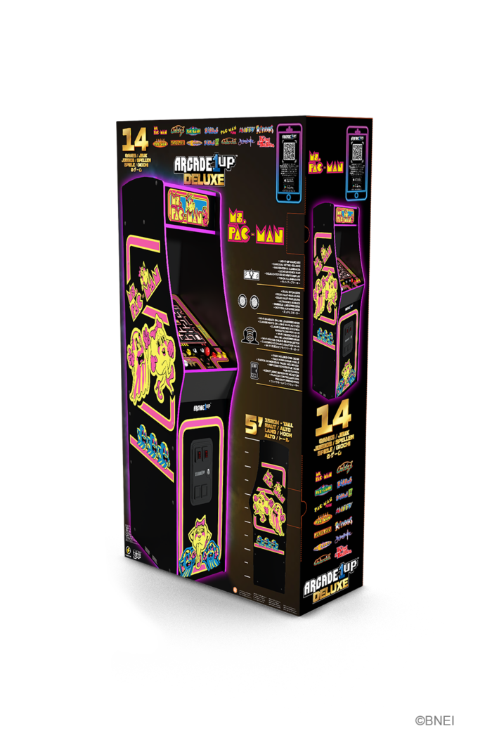 Get ready for the ultimate arcade gaming experience with the Ms. PAC-MAN Deluxe Arcade Machine. This sleek black arcade Machine is a true showstopper, featuring enhanced features that set it apart from the rest.